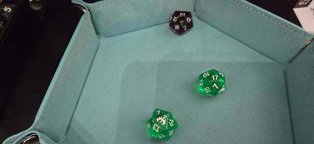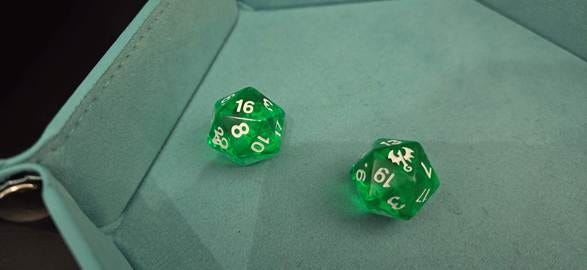 2d20 Gil’s Acrobatics check (7): 1, 16, a Dragon!Awesome! Hitting a natural 1 is called a Dragon, a critical hit, and the dice number even has a different, awesome design to represent it.