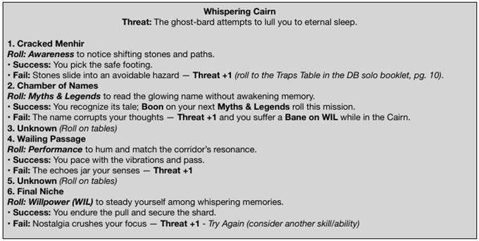 The Lantern of Solitude has a really great section with suggestions for all mission waypoints. It can help players who get stuck or aren’t feeling inspired. There are even examples of how to roll on random tables and use the results to create the unknown waypoints. Very cool, right?